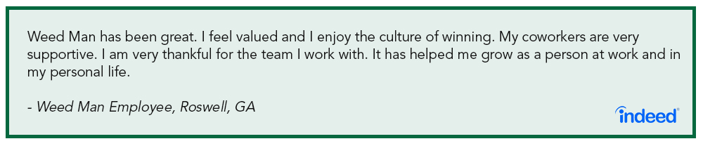 Hear from some of our incredible team members below, and what they have to say about their experience working at Weed Man Lawn Care!